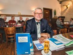 Nachdem der offizielle Teil unserer Versammlung schnell erledigt war, übergab Klösters das Wort an Herrn Spohr. Mit seinem neuen Buch im Gepäck ("Dr Affekat em Zuppejröns: Begriffe der Düsseldorfer Mundart"; erschienen im Grupello-Verlag) hielt er einen äußerst interessanten und kurzweiligen Vortrag zur Düsseldorfer Mundart. Gespannt lauschten ihm die Jonges bis halb zehn.